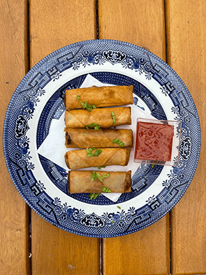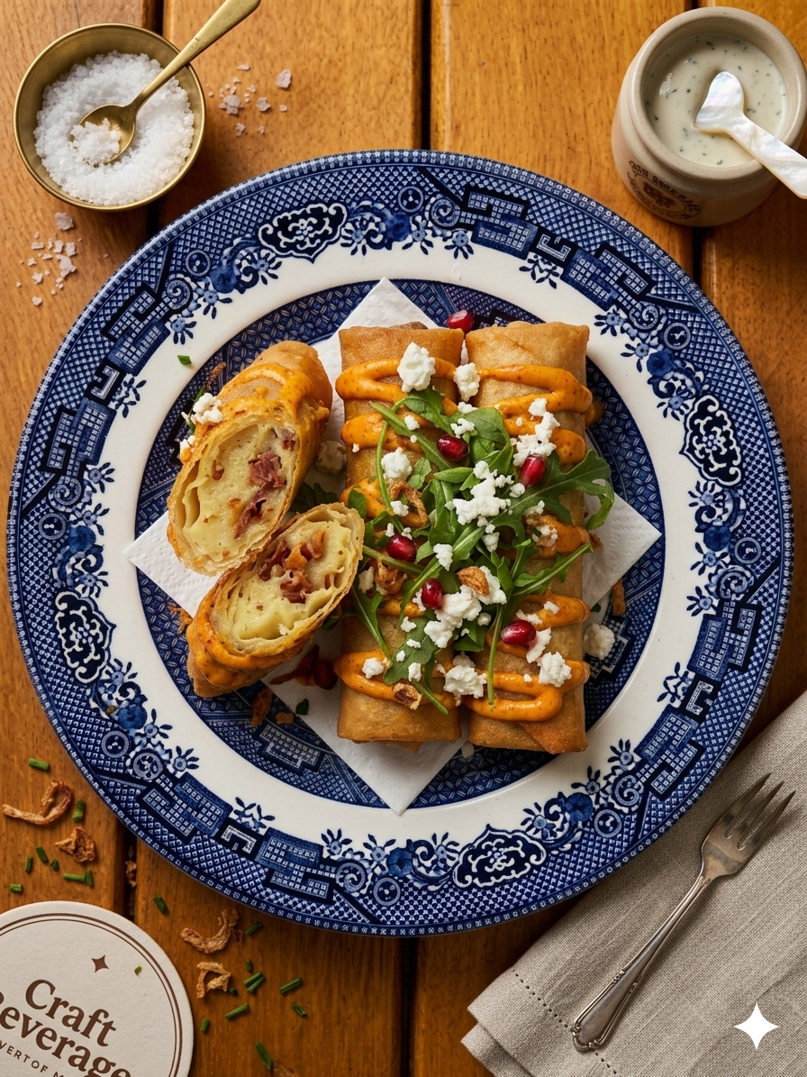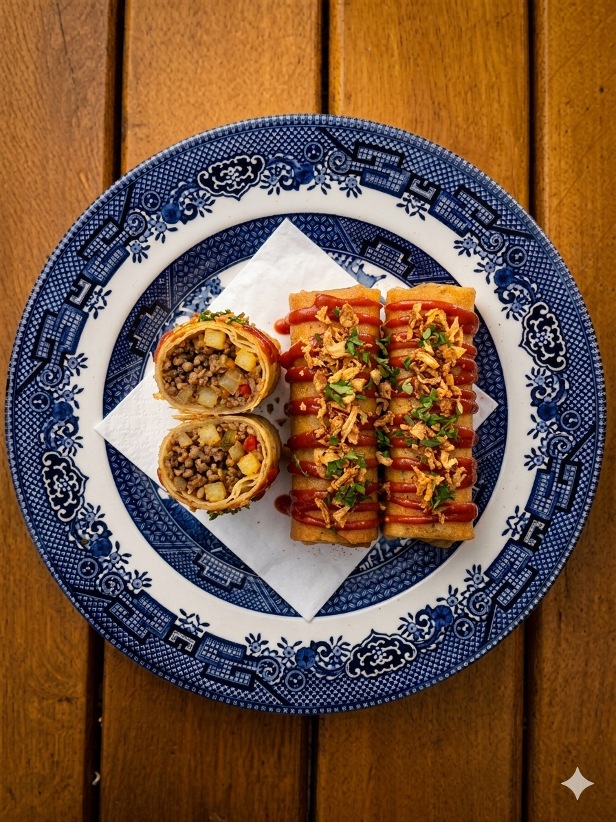Colombiaans geïnspireerde empanada vulling, paprika, honing-ketchup dressing